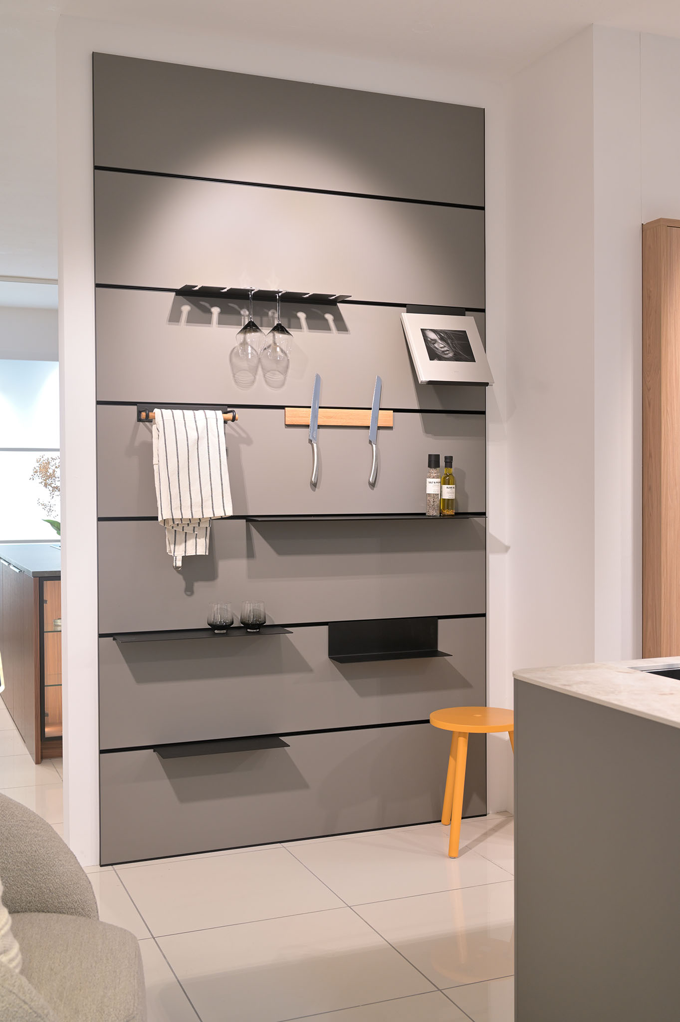 Durch eine gezielte Beleuchtung, z.B. eine neue Lichtleiste, erhalten Sie eine bessere Ausleuchtung der Arbeitsplätze. Ein Relingsystem nimmt Arbeitsgeräte auf.